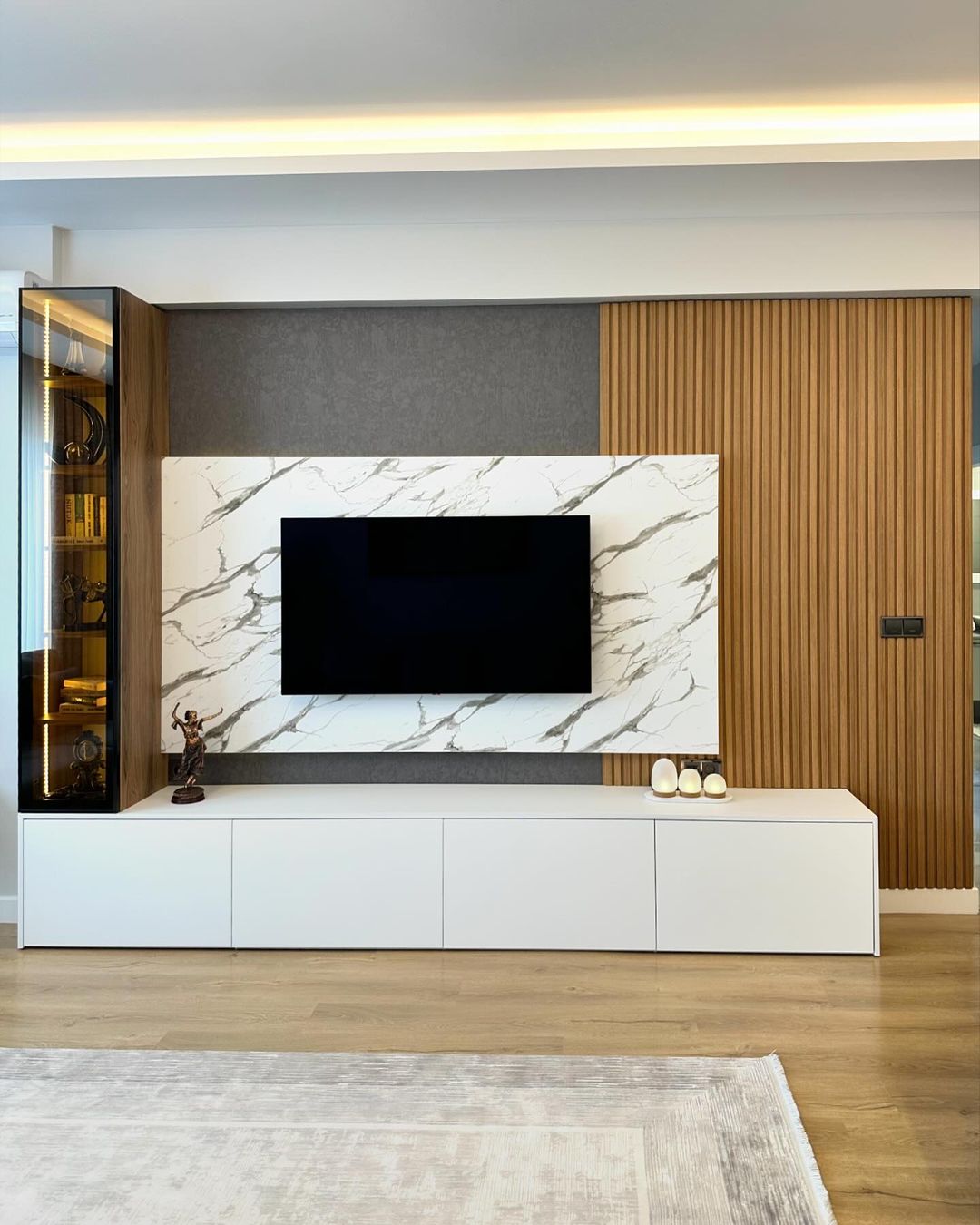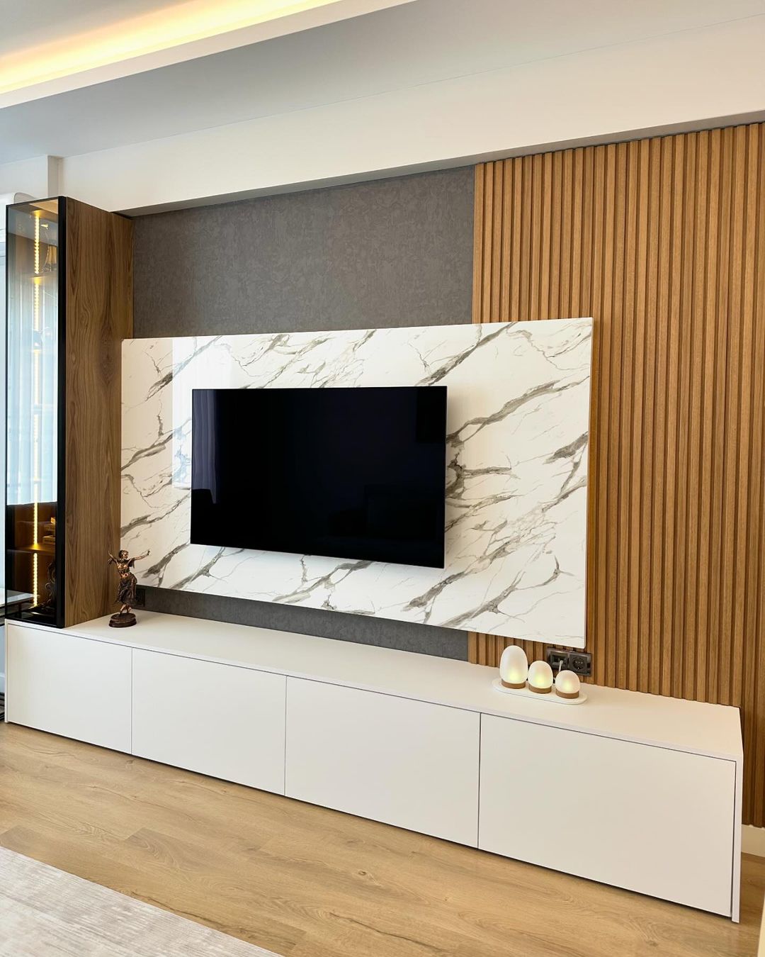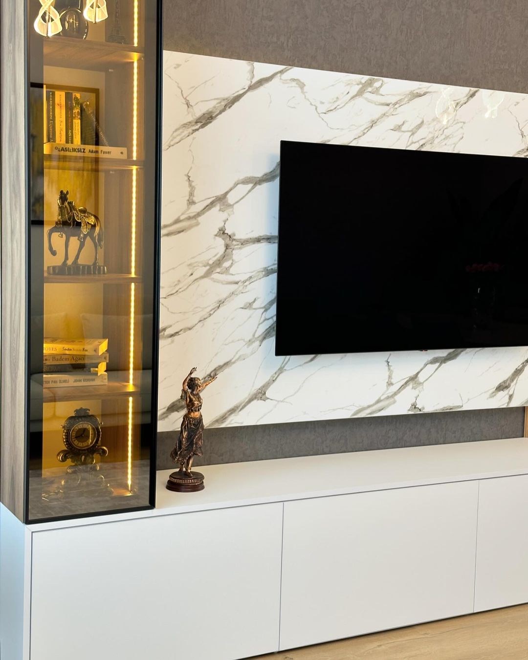 Bilgin Grup olarak, zarif ve modern tasarımlarla yaşam alanlarınızı dönüştürmek için buradayız. Tasarlayıp uyguladığımız bu şık TV ünitesi, mermer desenli yüzeyi, ahşap detayları ve geniş depolama alanıyla hem estetik hem de fonksiyonel bir çözüm sunuyor. Bursa'nın önde gelen tasarım ve uygulama firmalarından biri olarak, her detayı özenle düşünülmüş bu TV ünitesiyle yaşam alanlarınıza değer katıyoruz.